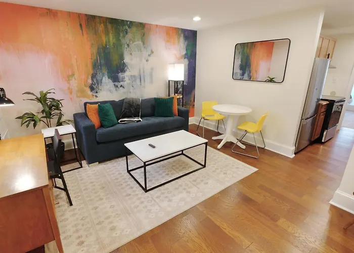 For your convenience, the apartment comprises an equipped kitchen with coffee and tea making facilities, a refrigerator, and kitchenware provided. H Street NE & 3rd Street Northeast bus stop is a short way from this apartment, and Union tube station is 700 metres away. Union Hub - Steps 2 Station Mall With Parking apartment opens onto a patio.
